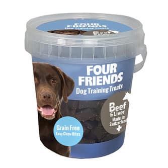 FourFriends Dog Training Treats är ett populärt hundgodis tillverkat i Schweiz av kontrollerade råvaror. Perfekt som lättuggat belöningsgodis för alla hundar. Mjuka smakfulla bitar som hundarna älskar! Den praktiska förvaringsburken är lätt att bära med sig.