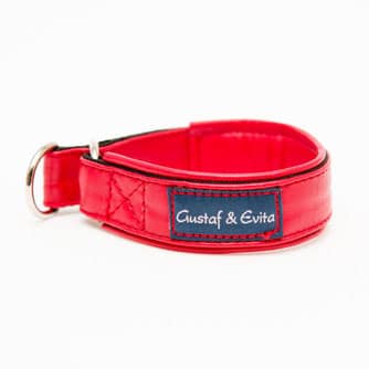 Mjukt, lyxigt och lätt halvstryp i rött skinn från Gustaf o Evita.