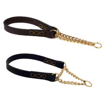 Läderhalsband halvstryp med mässingskedja, garvat på ett miljömässigt certifierat sätt, finns i brunt och svart.